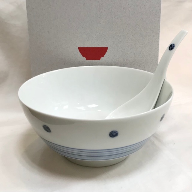 有田焼 究極のラーメン鉢・レンゲ 白磁プラチナ巻 ラーメン丼