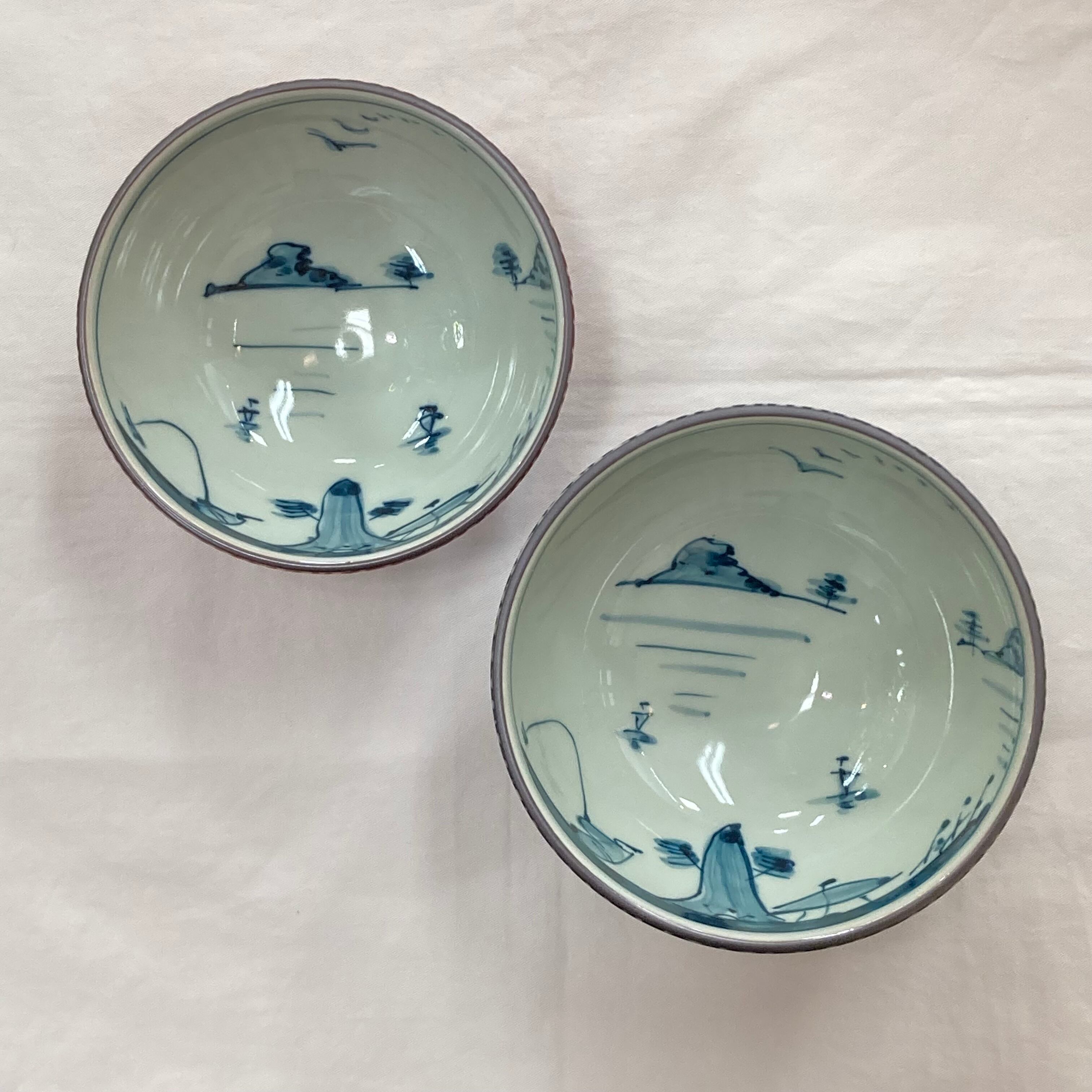 波佐見焼 手描き つづれ山水 飯碗、ご飯茶碗、お茶碗、軽い