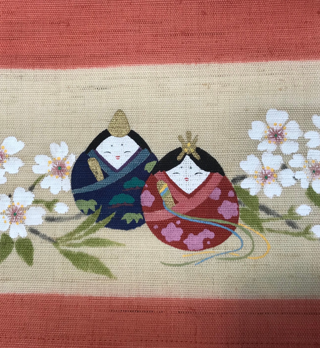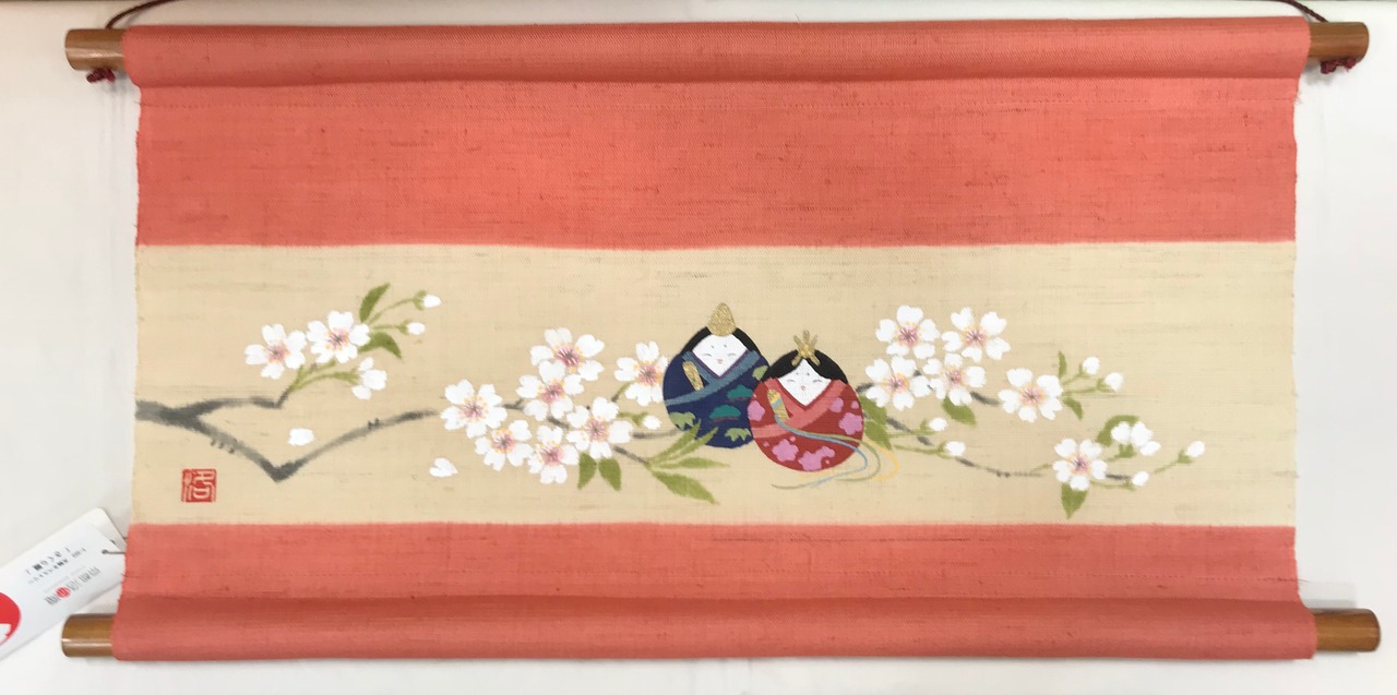天軸タペストリー さくら雛 落柿庵 麻100%