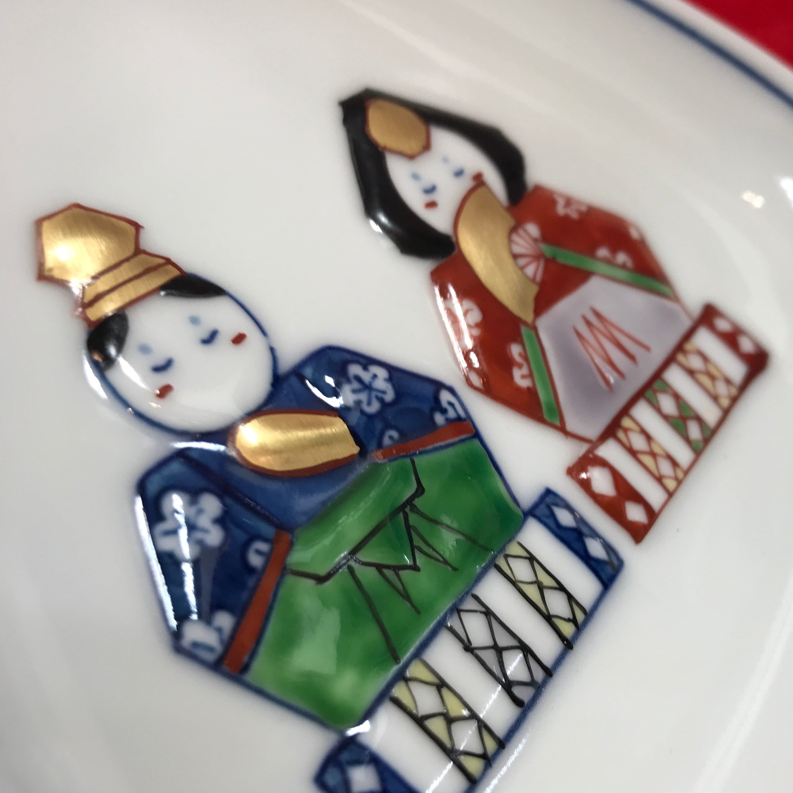 有田焼 源右衛門窯 染錦おり雛 皿 (皿立、赤布敷物付)
