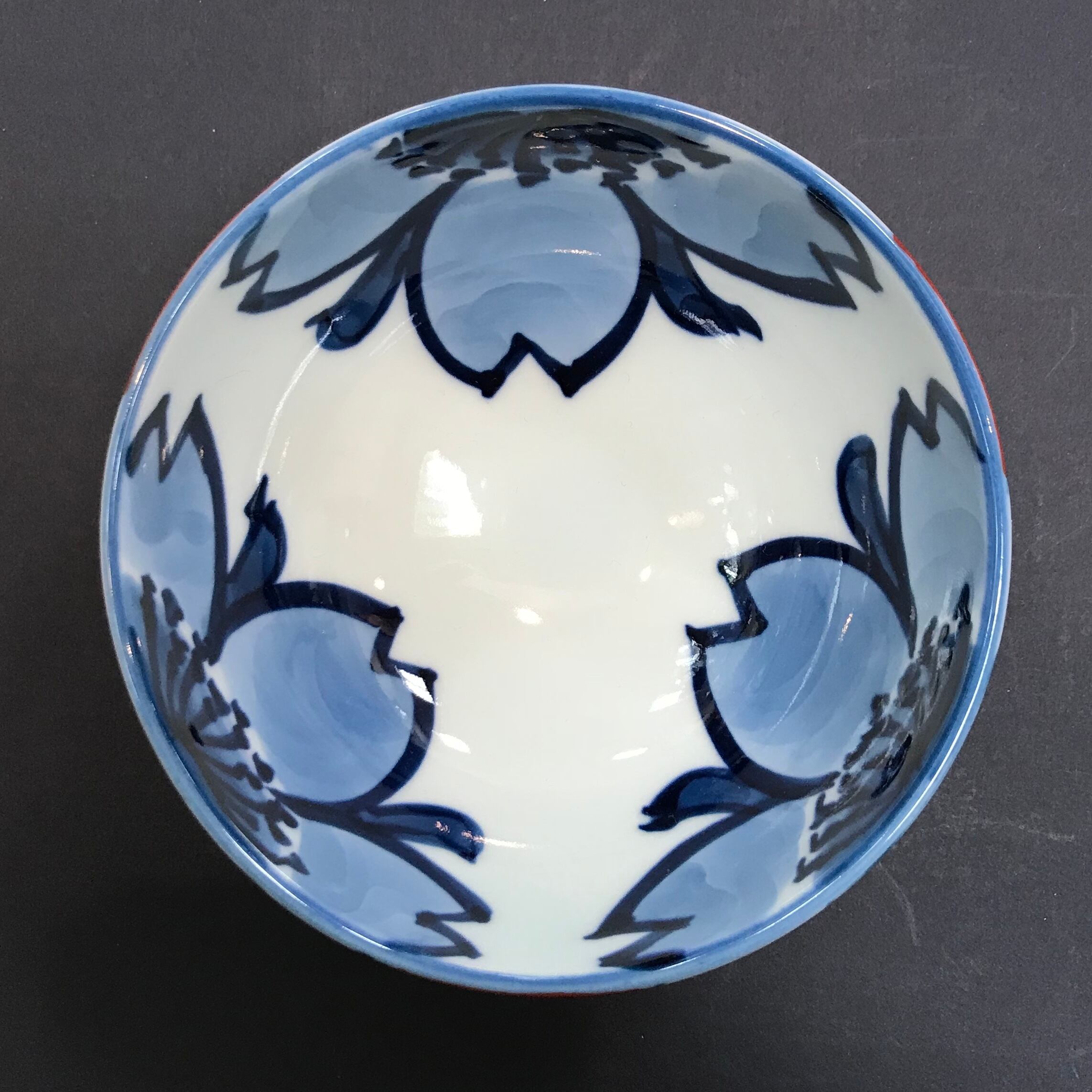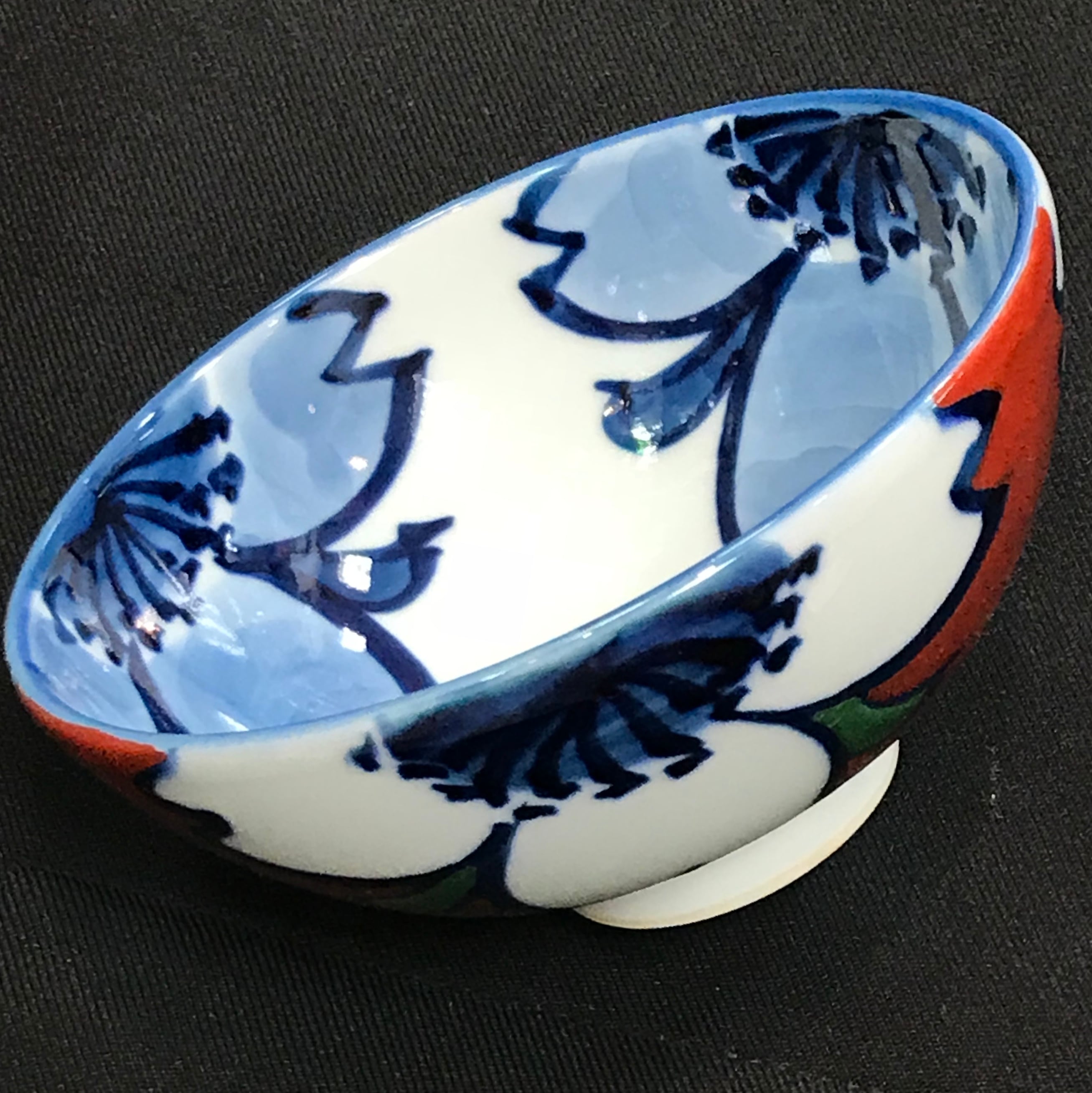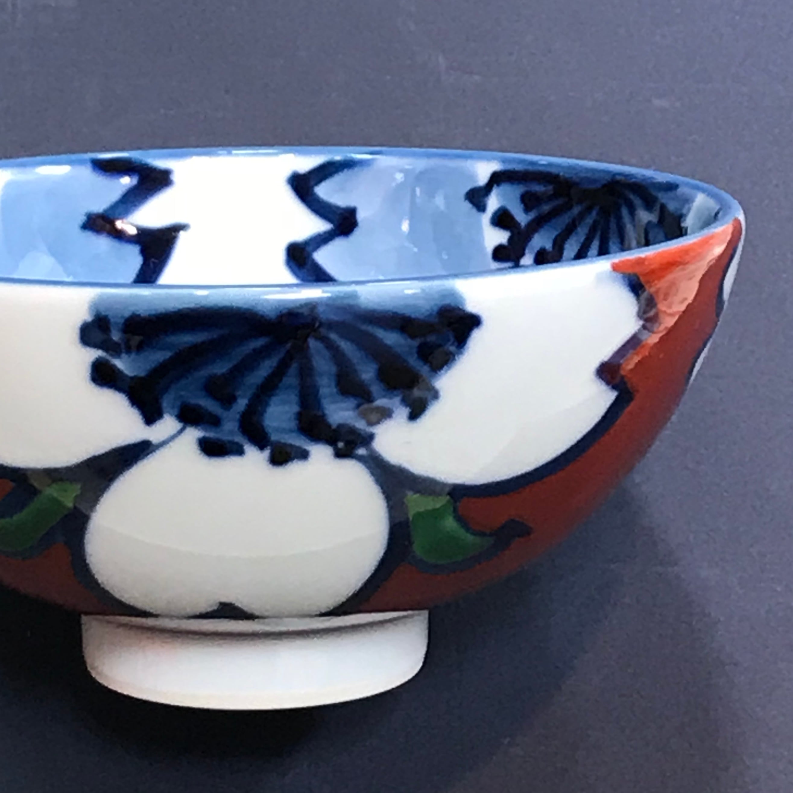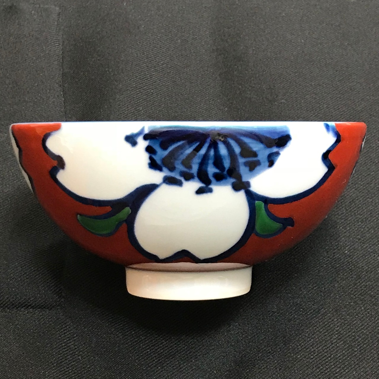 内外にのびやかな筆致で大胆に手描きされた桜の花、深い赤も飽きのこないきれいな色です。