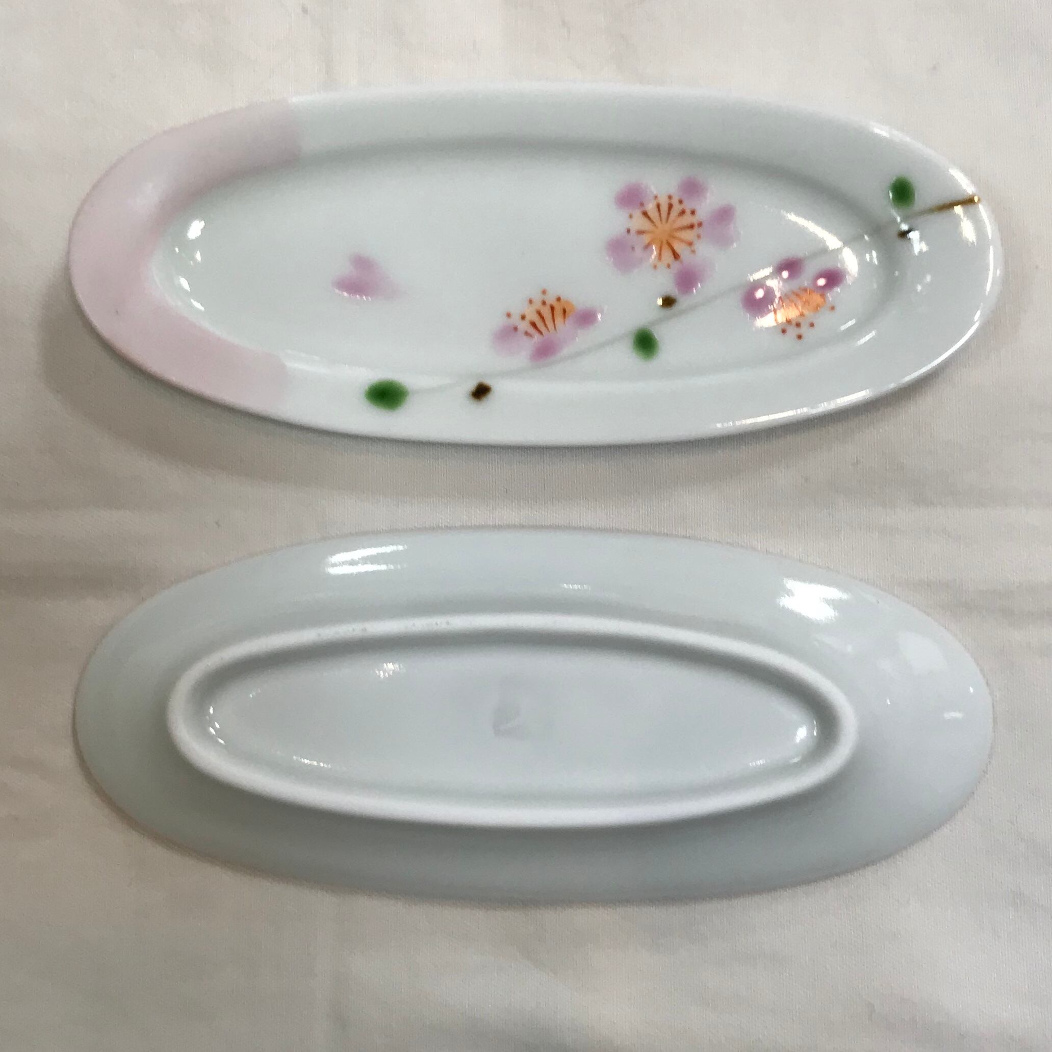 有田焼 桜日和 楕円スリム箸置珍味 (1個) 豆皿 スプーンレスト ミニトレー サクラ さくら