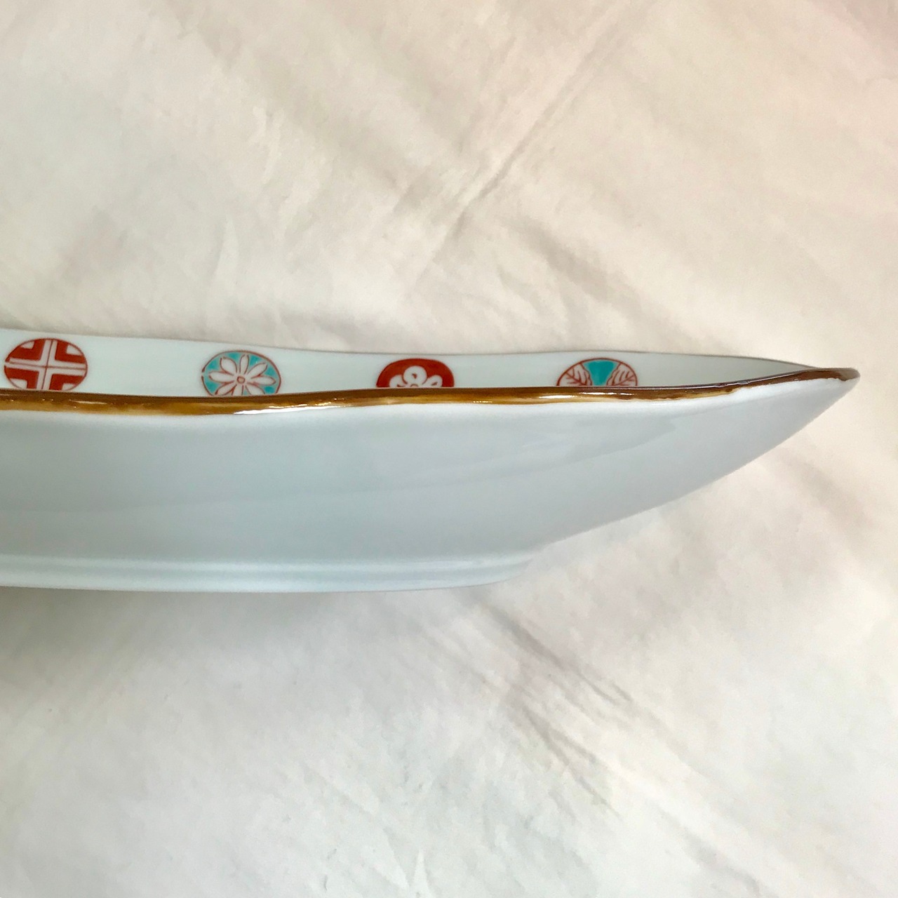 縁に並んだ丸紋の赤がアクセント。
