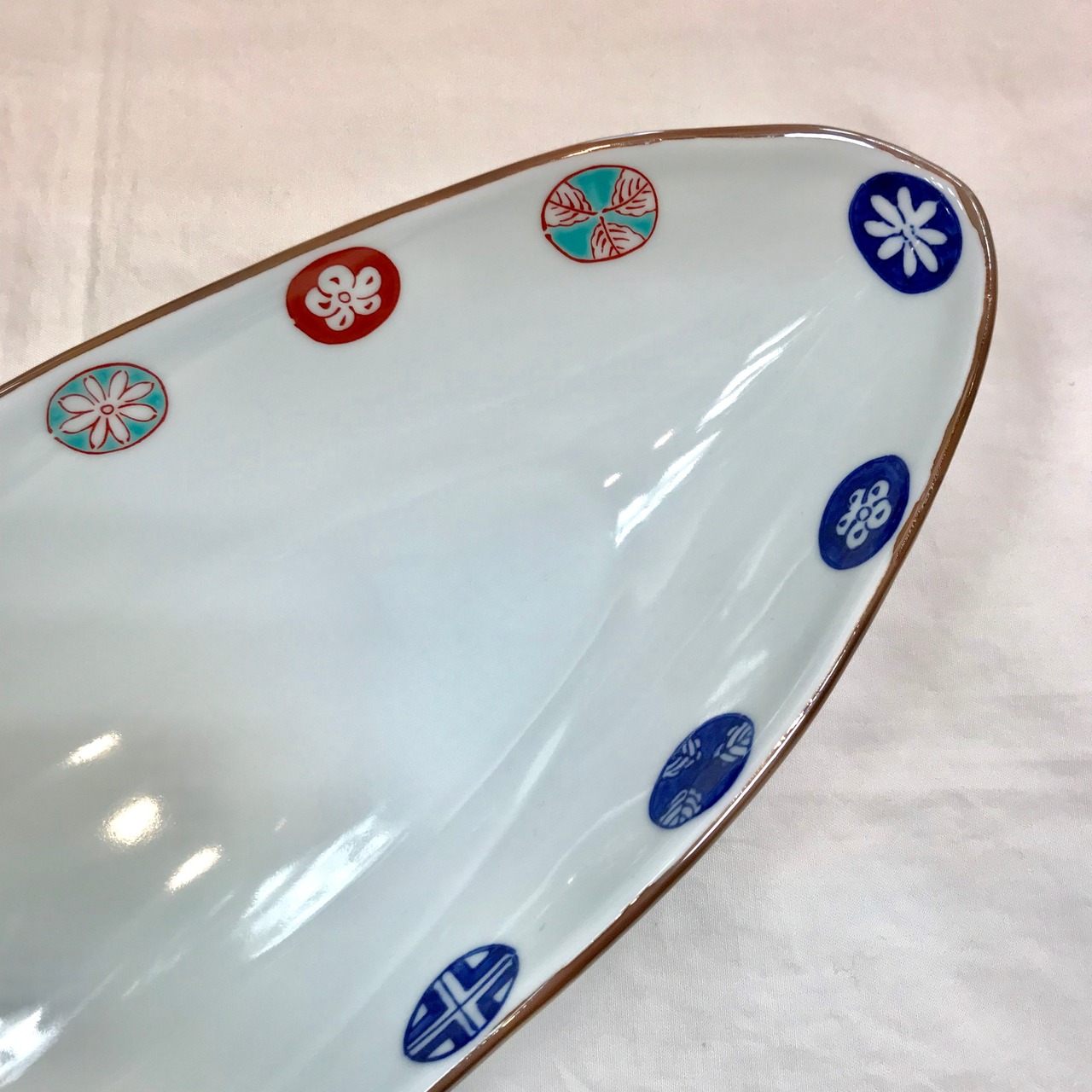 有田焼 染錦丸紋 舟型鉢 大鉢 楕円大皿 ボート型