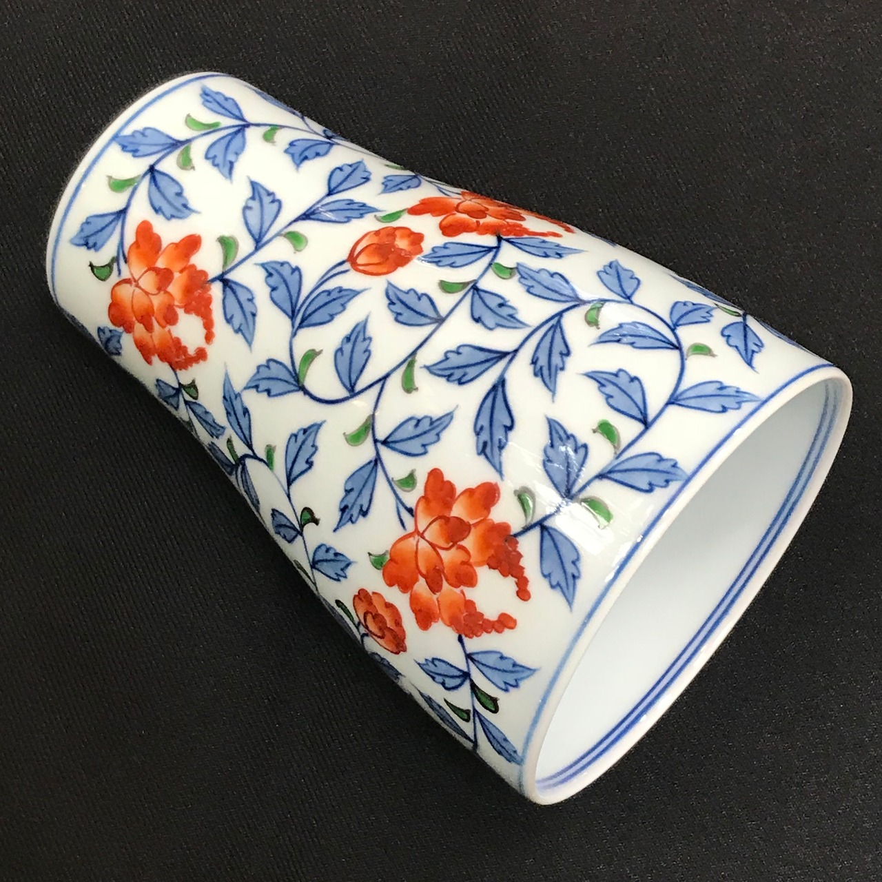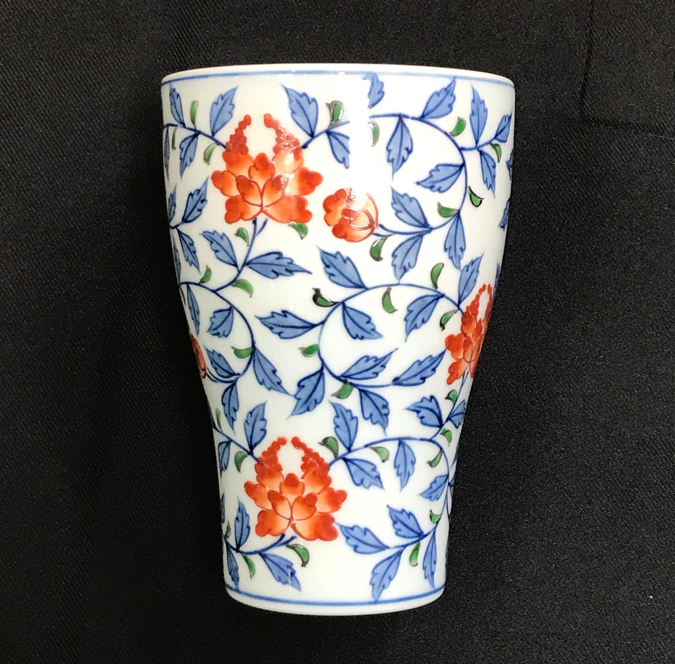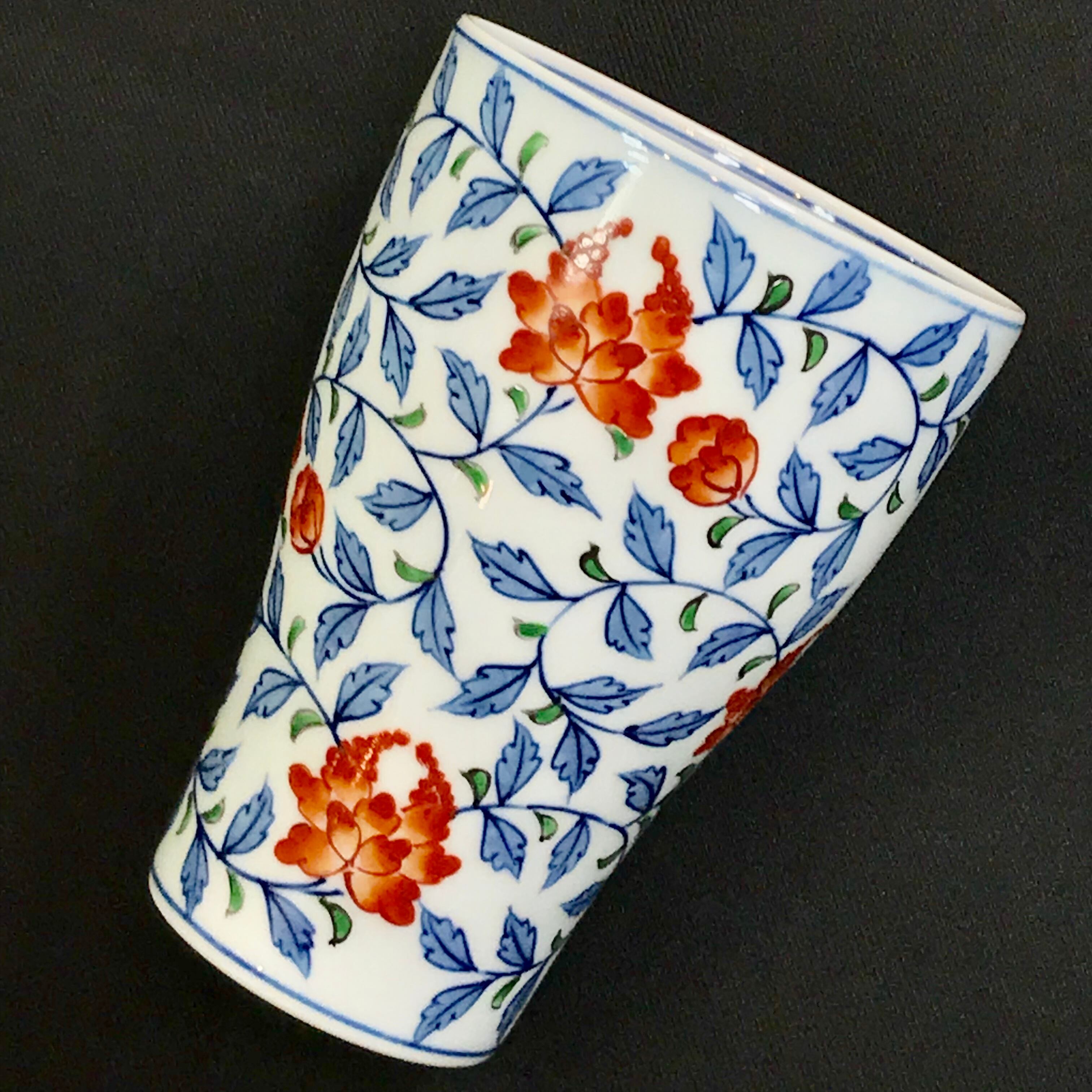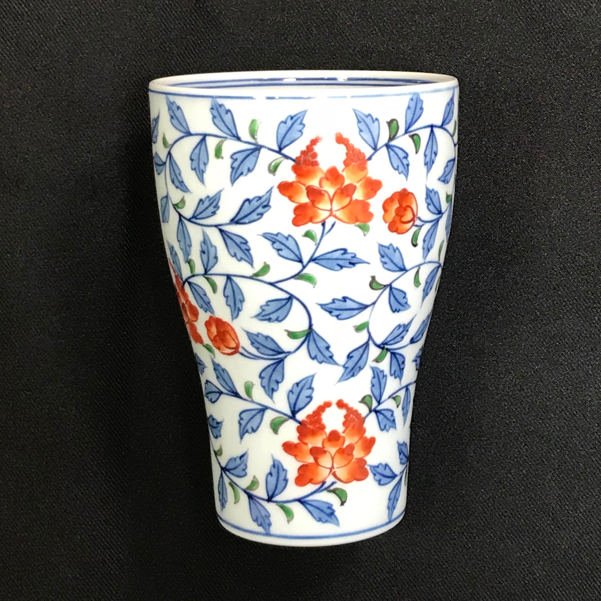 有田焼 源右衛門窯 染錦花唐草 フリーカップ 手描き ビアグラス タンブラー