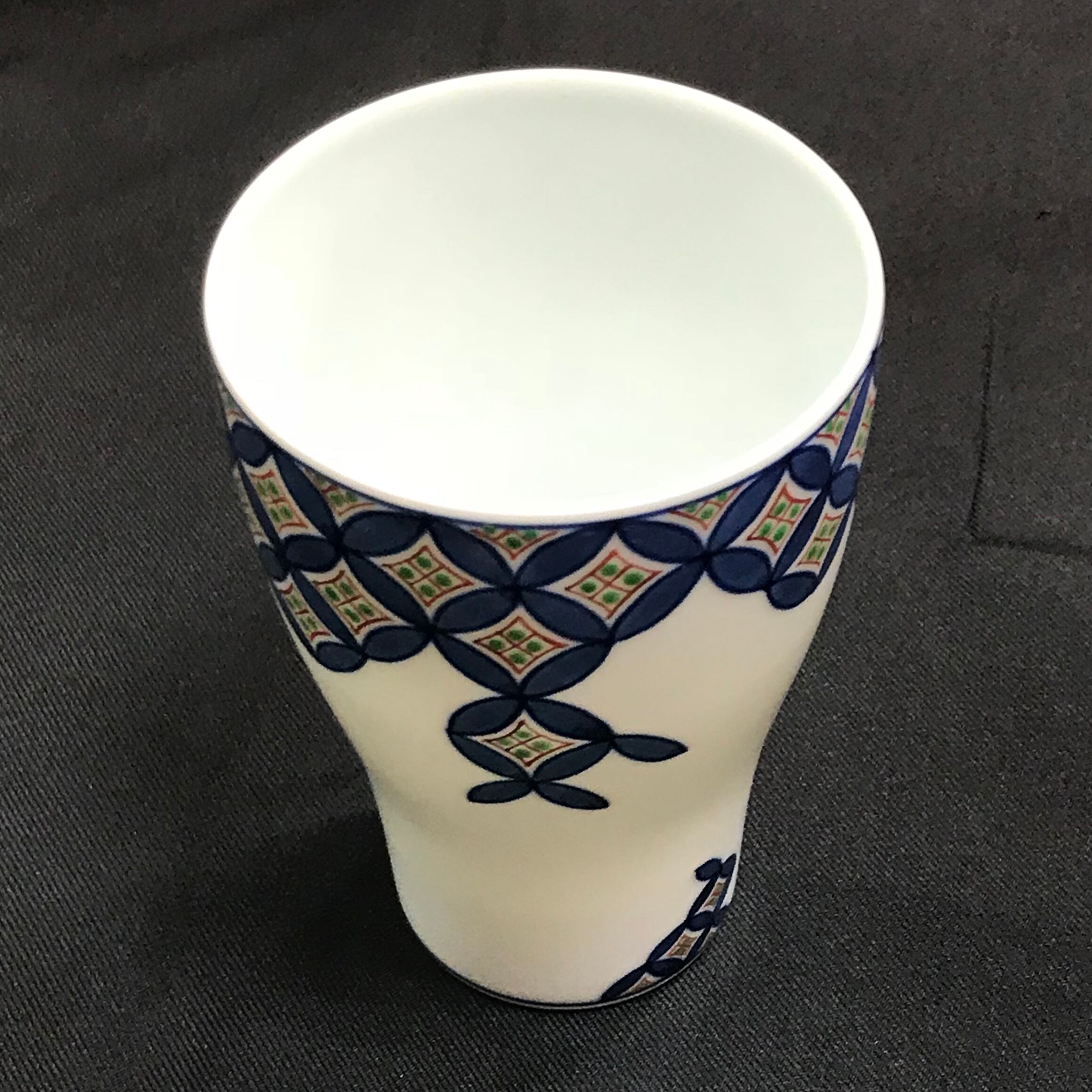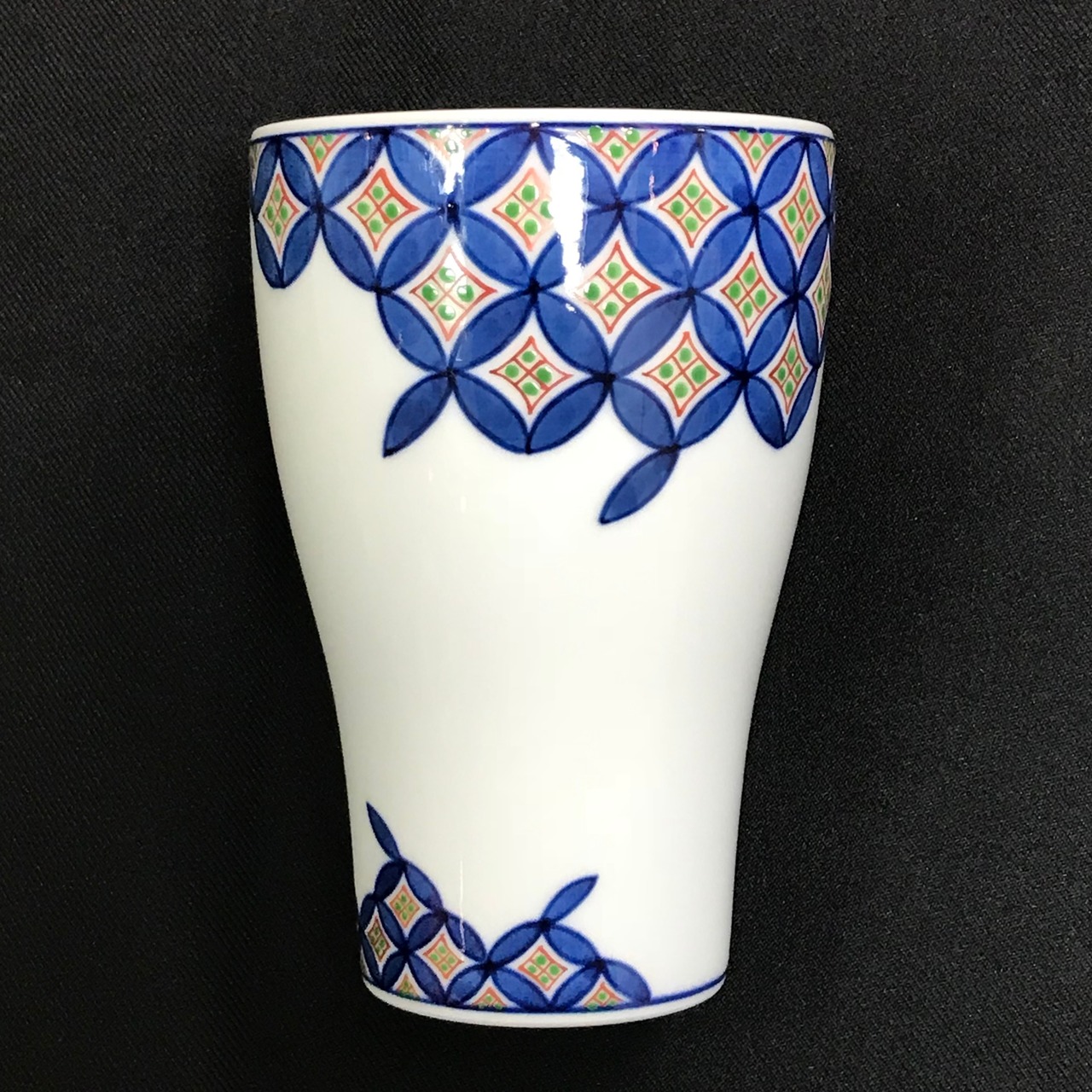 有田焼 源右衛門窯 染錦七宝紋 フリーカップ 手描き ビアグラス タンブラー